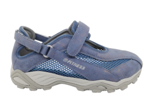 Mercedita fabricada en piel metalizada combinada con rejilla y un velcro, para conseguir una mayor adaptación y ajuste. La plantilla es viscoelástica y extraíble, para poder adaptar plantillas ortopédicas o podológicas. Este modelo es de tallaje grande, por lo que recomendamos escoger una talla menos a la que normalmente utilíza. El piso es de poliuretano de baja densidad, antideslizante y muy ligero.